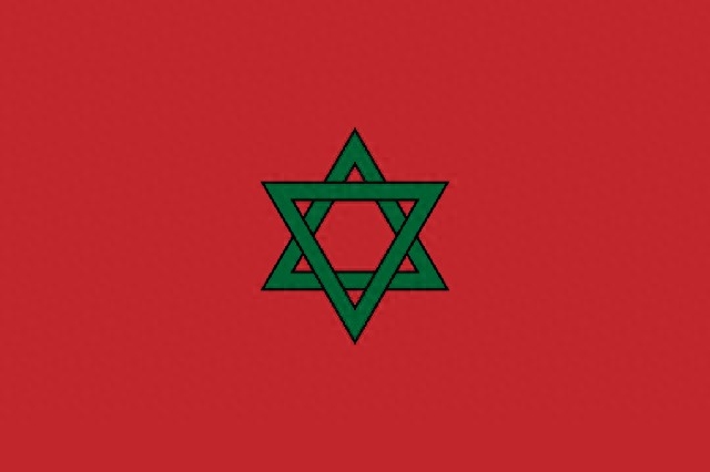 旗地为红色,中央有一颗由五根绿色线条交叉组成的五角星,被称为“苏莱曼之印”。国旗红色来自摩洛哥古国早期国旗的颜色。绿色五角星有两种解释:绿色是穆罕默德后代所喜欢的颜色,五角星象征人民对伊斯兰教的信仰;这一图案是驱病避邪的所罗门护符。