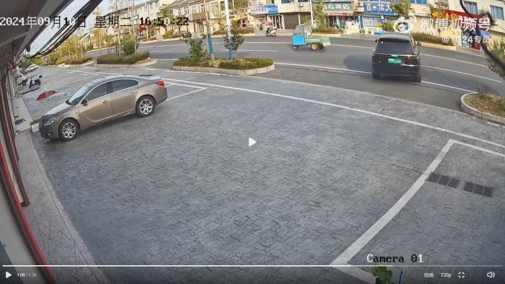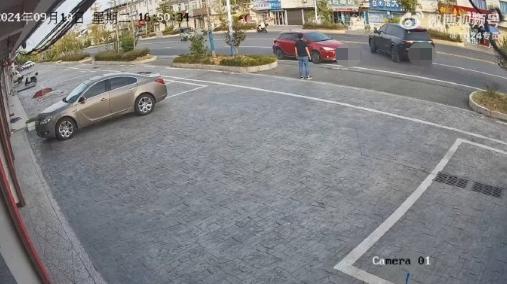 这时候,意外发生了,这车直接重新开离停车位,甚至开出停车场,开进了双车道马路中间;