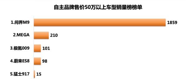 最新自主品牌 50 万元以上车型销量排名:问界 M9 断层领先