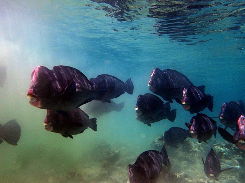 其他名:隆头鹦嘴鱼、绿色苏眉鹦嘴鱼、双头鹦嘴鱼