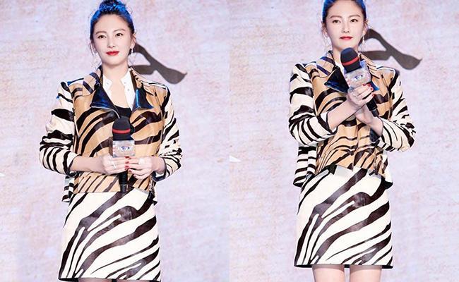 发布会现场,张雨绮身着卡其色条纹短裙套装现身,高贵中不乏性感,豹系条纹混搭带来了强烈的视觉冲击,化身猫系2.0——豹系女神。