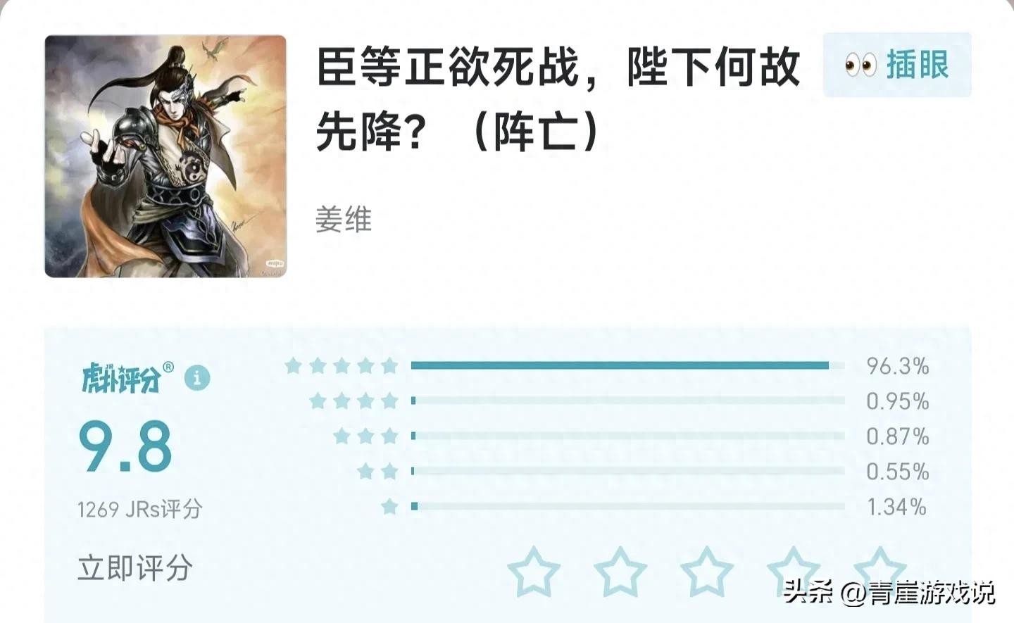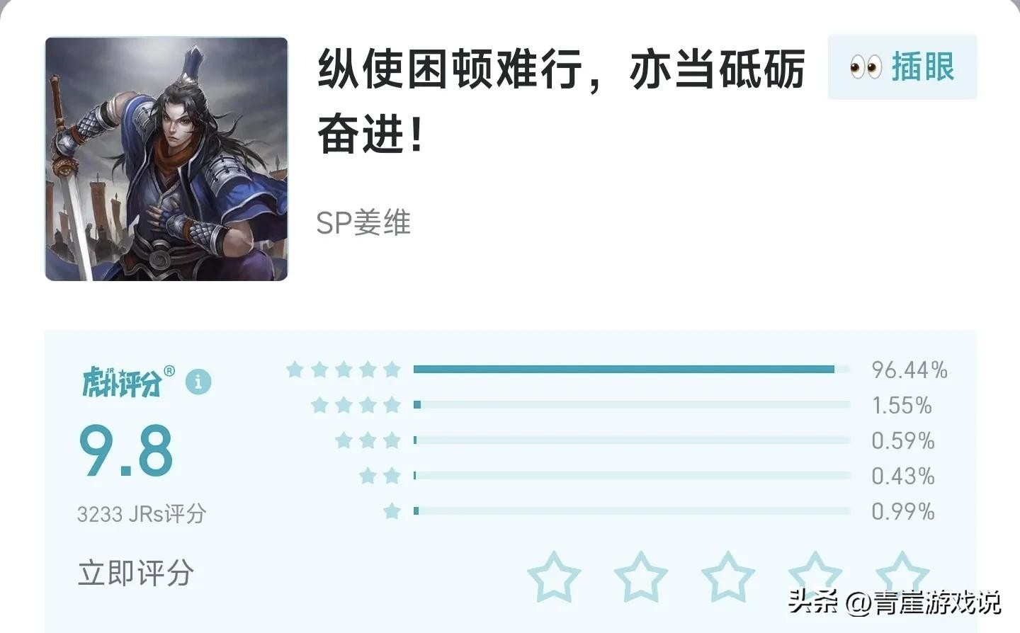 在丞相倒下之后,接过蜀汉时代接力棒的便是姜维。这是一个励志与悲伤的故事,但这位男人满心热忱。这是唯一一位水晶都被打爆,却依旧在操作的男人……