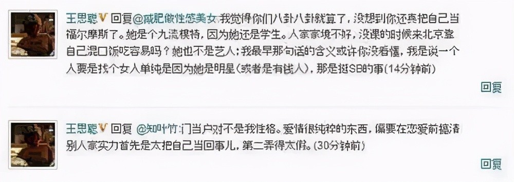 网友跑到思聪微博下求证,结果王思聪还真就公开向网友承认自己有这么个女朋友,还处处为女朋友说话,当时的金句是--门当户对不是我性格!爱情是很纯粹的东西!给纯情的王公子跪下了啊!