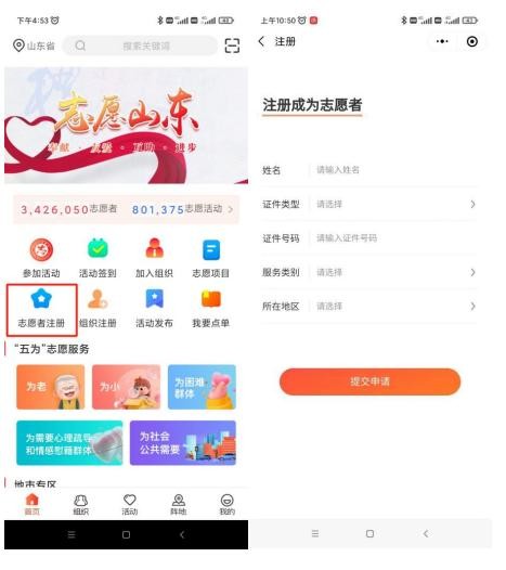 点击功能区的【志愿者注册】,授权手机号登录,输入相关信息,点击【提交申请】即可注册成功。