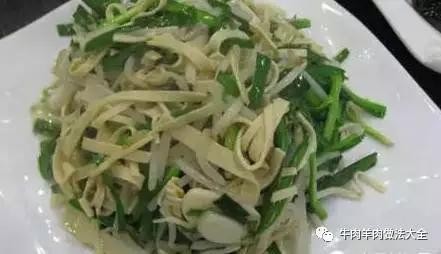 将肉、干豆腐切成细丝,蒜苗切成寸段。锅烧热放入平时炒菜的油量,放入肉丝炒变色,放入干豆腐丝炒匀,再放入生抽和花椒粉炒匀,放入小半碗高汤或清水炒1分钟,放入蒜苗炒匀断生即可。