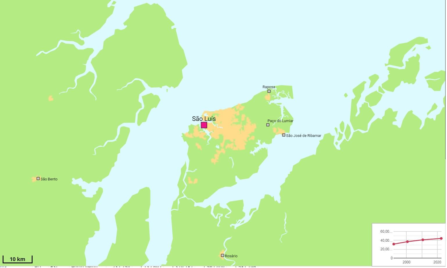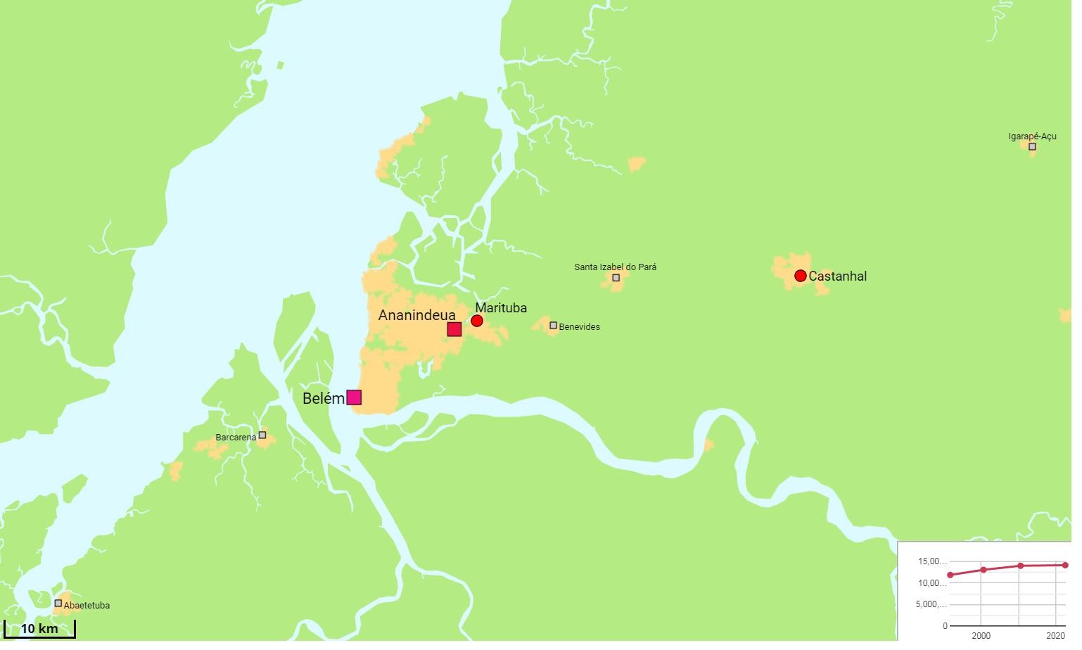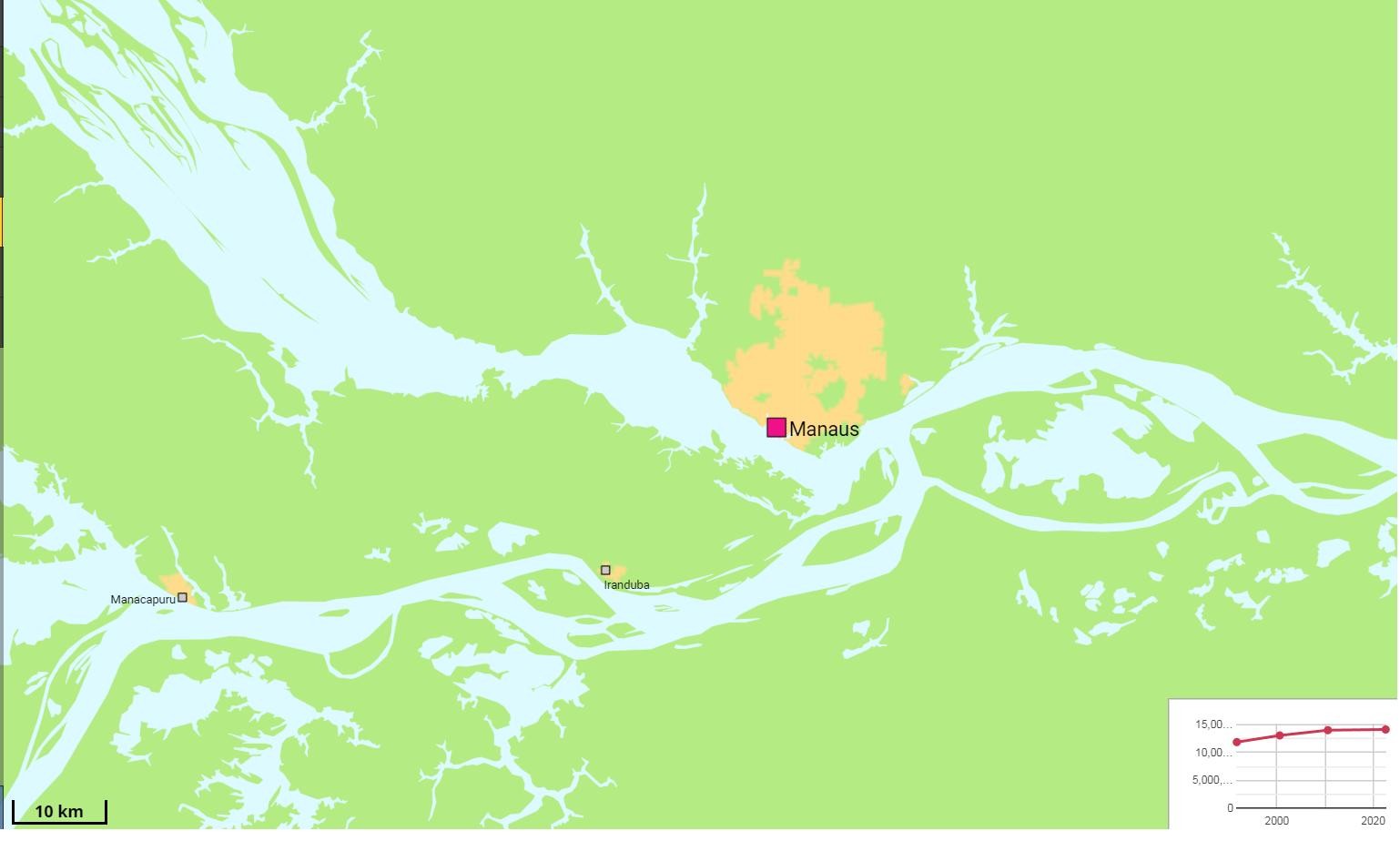 马瑙斯是巴西北部最大的城市,亚马孙州首府,位于亚马孙河与其支流内格罗河交汇处,市区面积1.14万平方公里,在以上城市中面积最大,人口224.45万,单以市区人口排名,位居巴西第七,但其附近没有其他城镇,组成不了都市区,所以城区人口比市区人口要少,为206万。