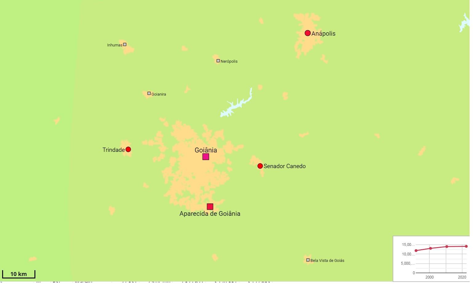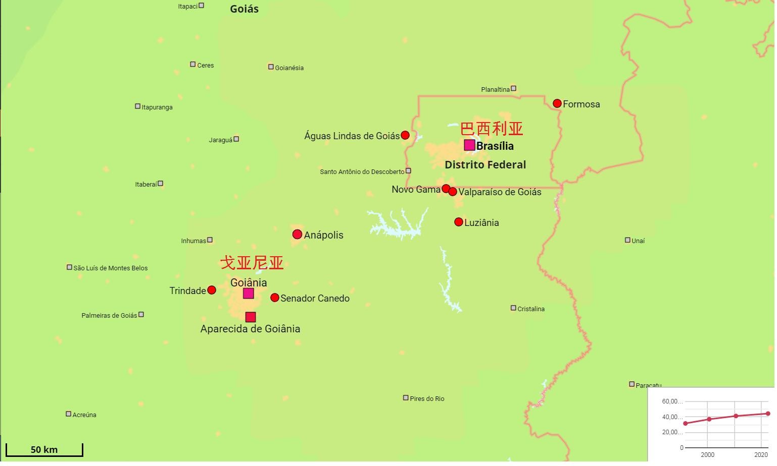 戈亚尼亚位于巴西中西部,东北距离巴西利亚200公里,是戈亚斯州首府,市区面积729平方公里,人口155万,都市区人口248万。