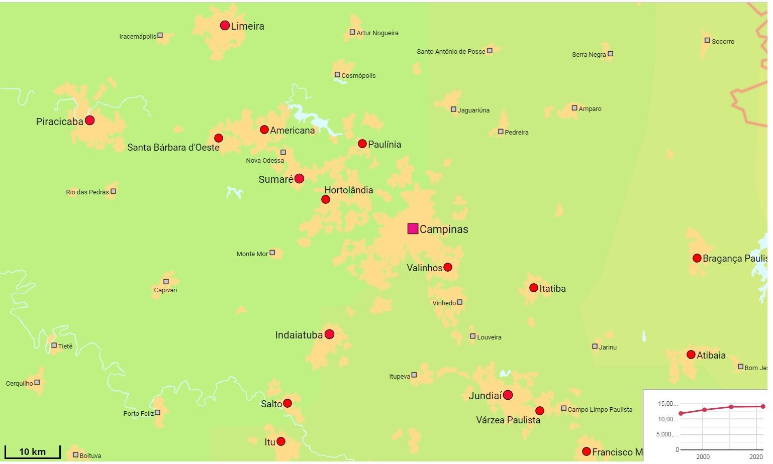 坎皮纳斯是圣保罗州的第二大城市,东南距圣保罗市约100公里,市区面积794平方公里,人口120万,都市区人口209万。