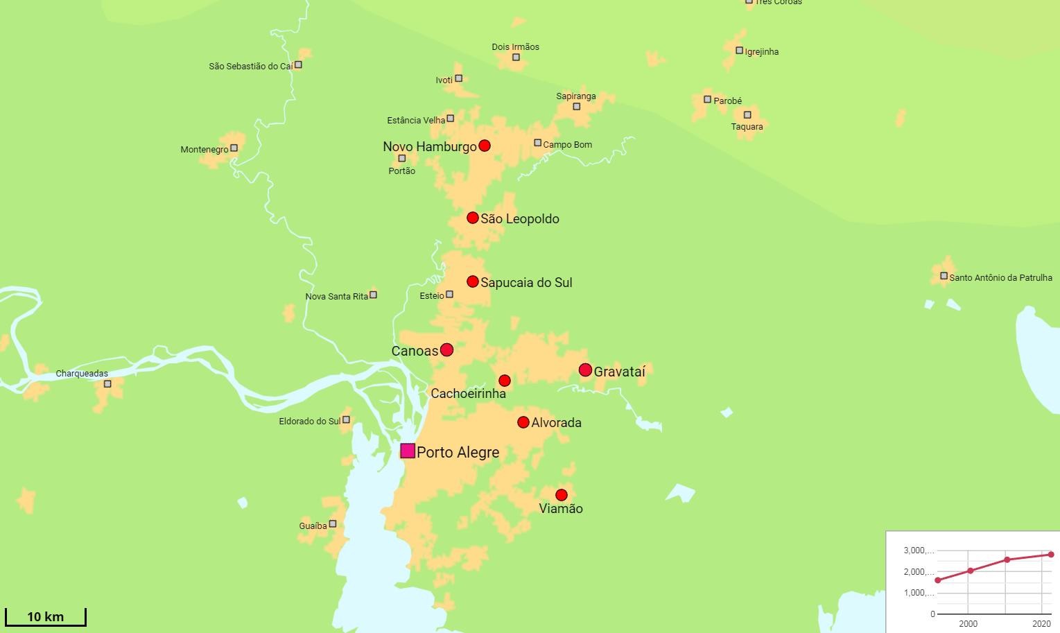 阿雷格里港是巴西最南部的大城市,南部重要港口,南里奥格兰德州首府,市区面积497平方公里,人口149.25万,都市区含附近13个郊区市,面积5806平方公里,人口368万。