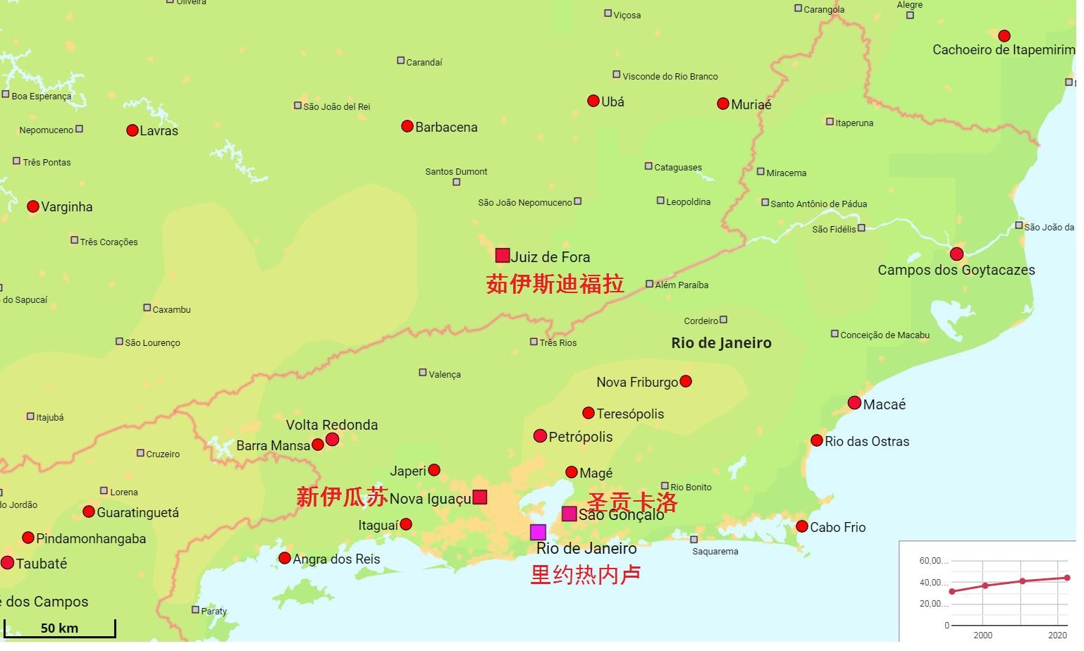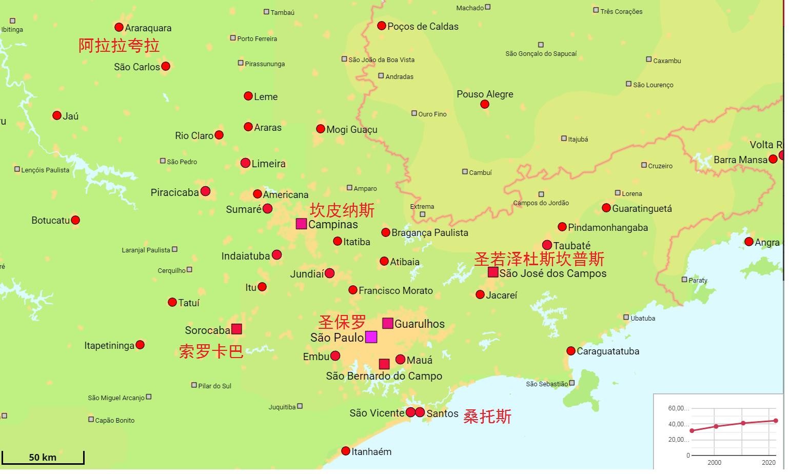 巴西东部城市分布
