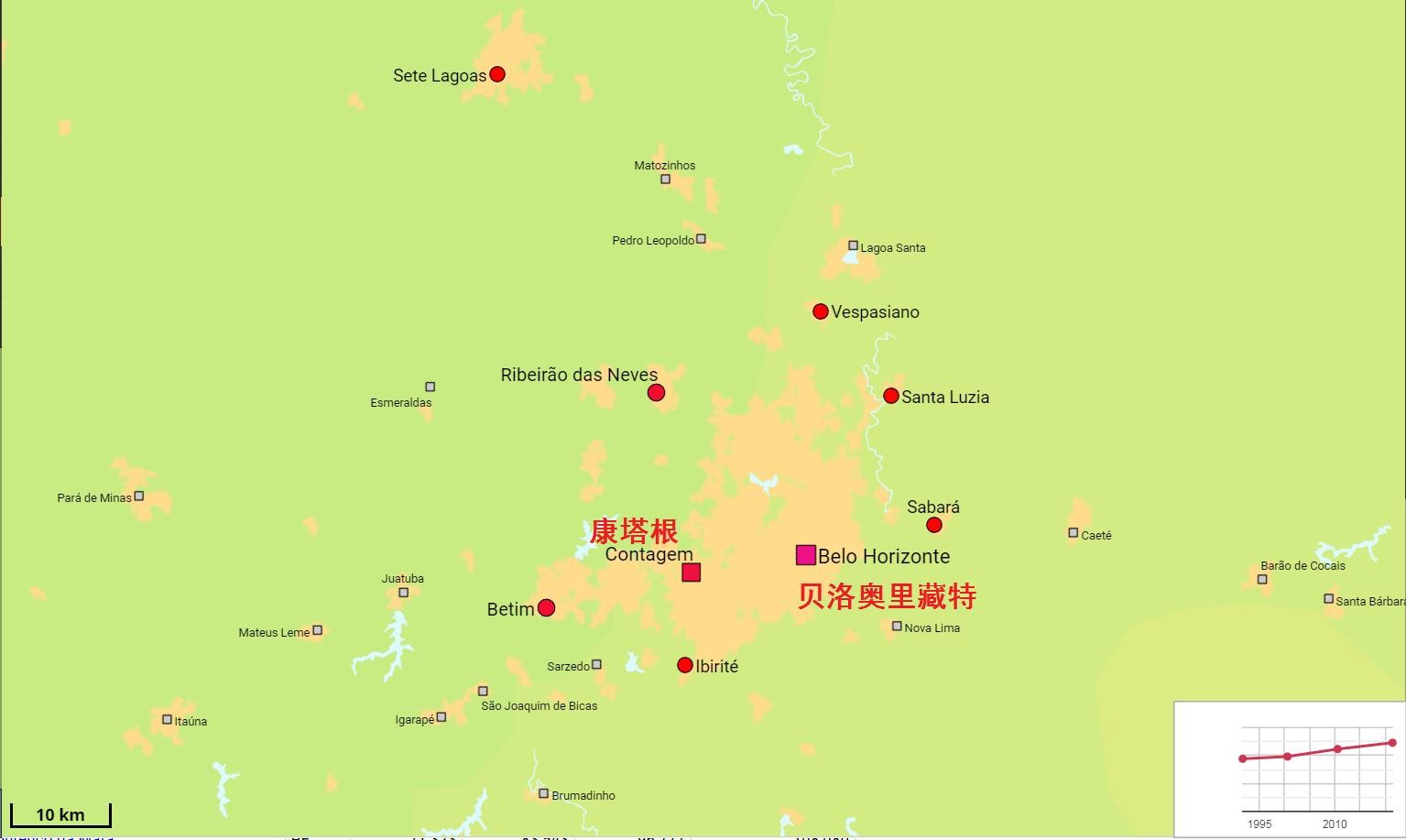 贝洛奥里藏特是巴西第三大城市,米纳斯吉拉斯州首府,市区面积335平方公里,人口253万。大贝洛奥里藏特包括14个郊区市,面积3670平方公里,人口496.4万,其中康塔根市人口67万。