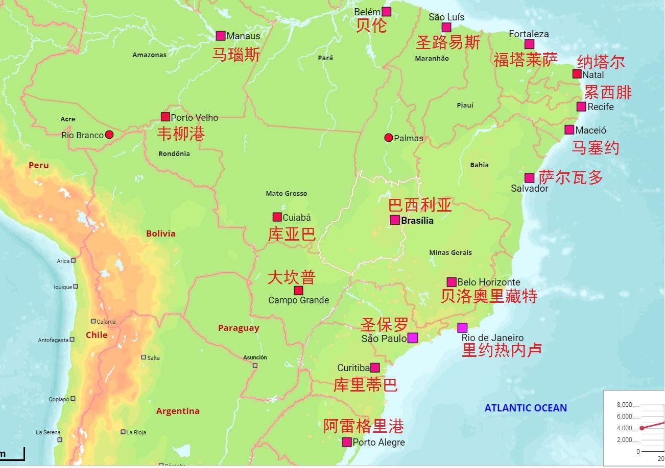 巴西主要城市分布