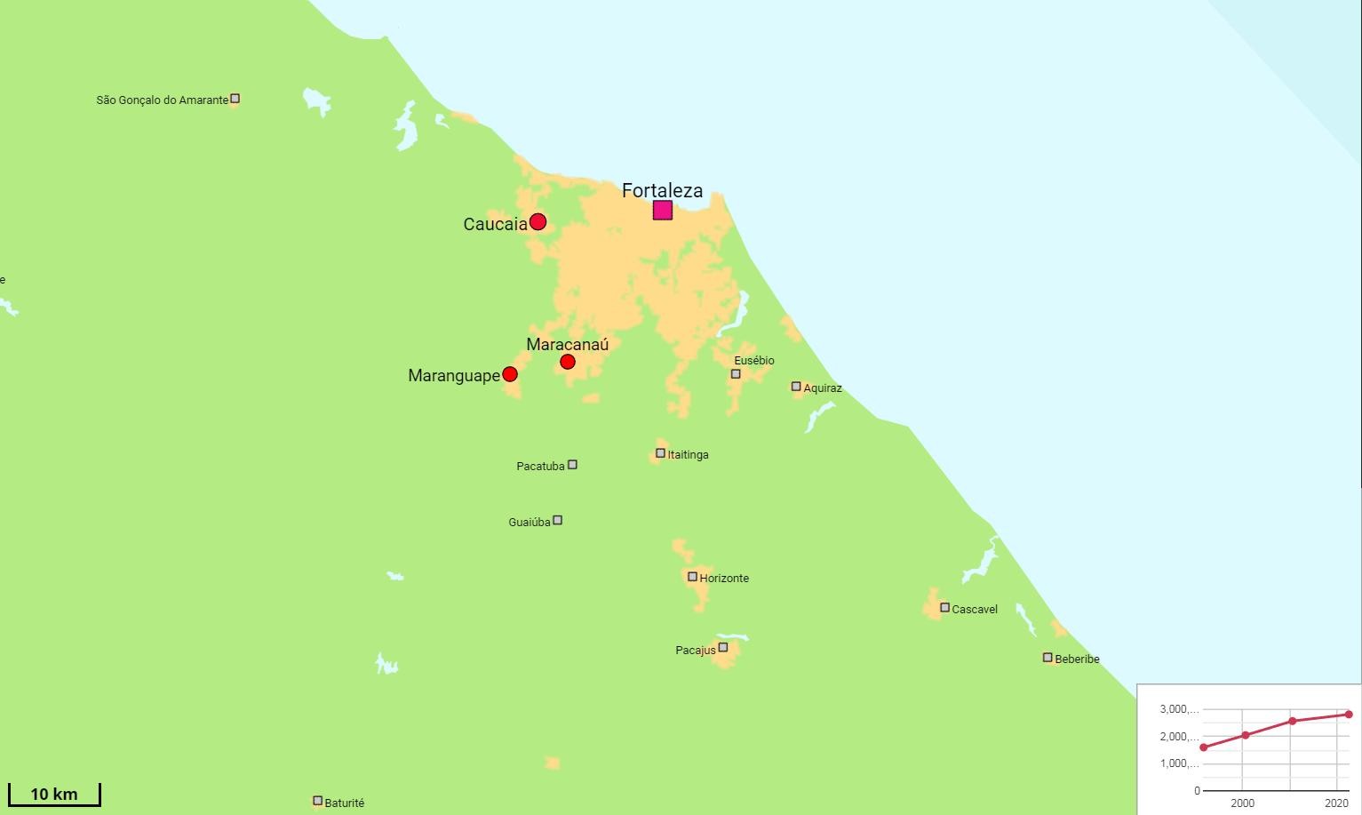 福塔莱萨位于大西洋沿岸,是巴西东北部重要海港,塞阿拉州首府,市区面积312平方公里,人口270万,单以市区人口论位居巴西第五。都市区面积3483平方公里,人口342.5万。