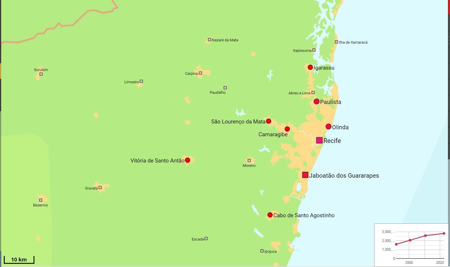 累西腓位于南美大陆最东端布朗库角附近,是巴西伯南布哥州首府及港口,市区面积218.84平方公里,人口166.1万,都市区人口378万,位居巴西第五位。