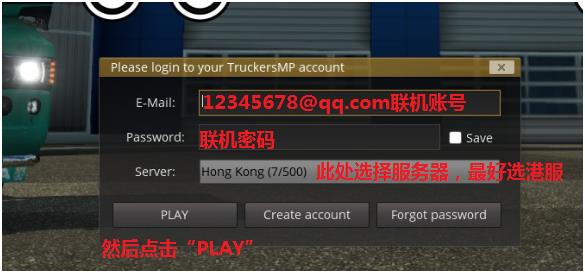 点击“PLAY”以后,就启动欧卡2游戏了,就按照如下图所示的方式进入联机即可