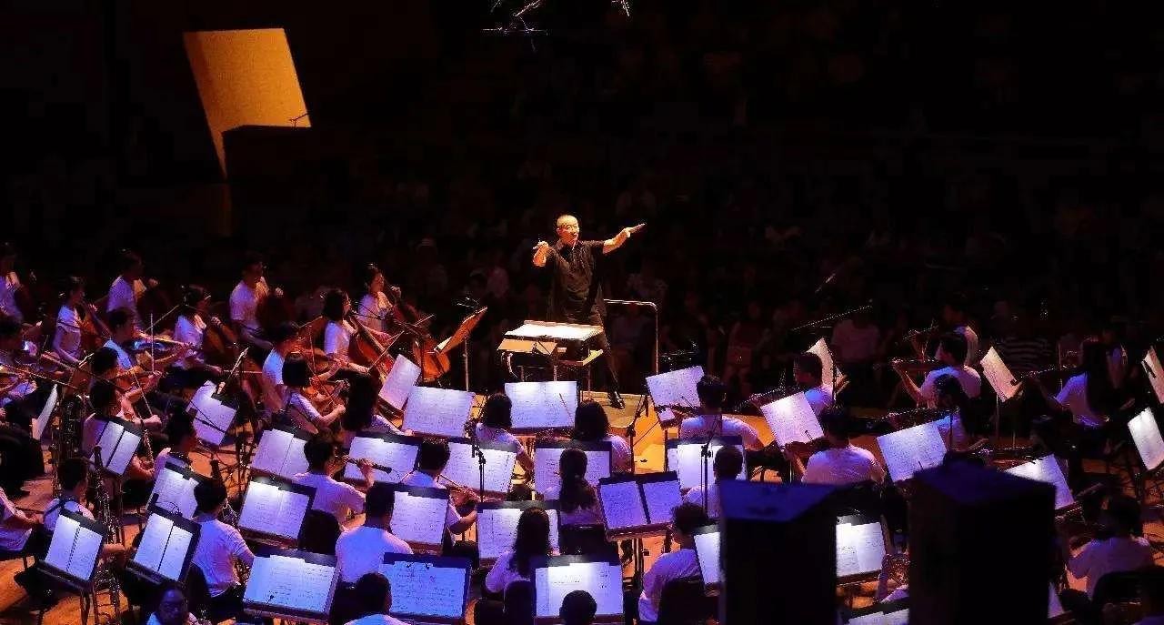 谭盾全神贯注地在指挥