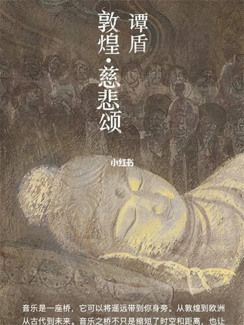 他创作了秦始皇和马可波罗两部歌剧。以及交响曲和其他形式的音乐,女书、月光爱人、离骚、纸乐、武侠三部曲、鬼戏~等曲目。谭盾用六年的时间,遍访大英博物馆、巴黎博物馆、奈良博物馆、波士顿博物馆~等。去了十余次敦煌,为的是在屹立于丝绸之路的敦煌获得灵感。用以创作大型交响曲【敦煌•慈悲颂】。此交响曲分别是:“菩提树、九色鹿、千手千眼、禅园、心经、涅槃,六个乐章”。诠释了中国文化的理念:众生平等,牺牲和奉献。过去现在将来是怎么回事?以及天人合一的哲学思想。这是一部巨作!