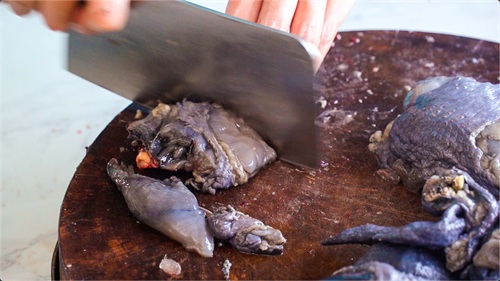 其中要去除内脏,将鸡肉剁成小块儿。