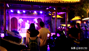 左边看到的全是人人人人,好多人,到处都是人!首先映入眼帘的是一个类似戏台样子的舞台,有歌手正在唱歌,歌声很专业很好听。舞台前面整齐排列了几排哈雷大机车,还有好多人在观看歌手唱歌。