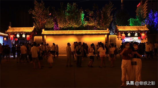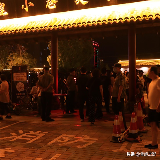 6月28日晚上9点左右,好奇小编再次骑着小电动向秦皇小巷进发!沿着河北大街-文昌路-奥体街一路行驶,刚到奥体街与文龙路交叉口时就已经明显看到人群增多,车辆开始堵车,前方一片灯火通明。很快,左手边就看到了建材学院高高亮起的大LOGO,再往右手边一看,目的地已经到了!
