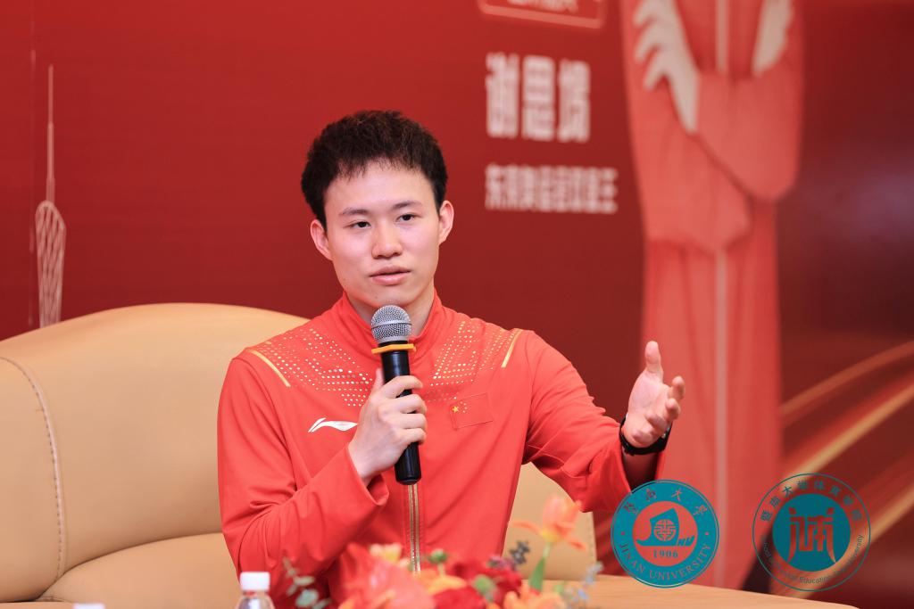 不仅如此,暨南大学 2025 级运动训练专业本科生严海滨也在田径赛场上崭露头角。2025 年,他与队友在杭州第 19 届亚运会田径男子 4 × 100 米接力项目中夺冠,展现了中国田径的强大实力。2024 年,在世界田联接力赛上,中国男子 4 × 100 米接力队在预赛中获得小组第二,提前锁定了巴黎奥运会的参赛资格。严海滨曾参加暨大的校园夜跑等活动,在学校第 48 届田径运动会开幕式上作为运动员代表宣誓。他在接受羊城晚报采访时表示,他在赛场上的荣誉不单单属于他一个人,也属于为了中国短跑事业奋斗的所有人," 这份力量也包含了我们暨南大学,如果没有暨大的支持,我感觉我也很难走到这一步。"