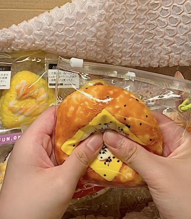 它们多是用硅胶类材质制作,有着糯叽叽的手感,可塑性更强,且外形酷似各类美食,又好看又解压,受到不少年轻人追捧。