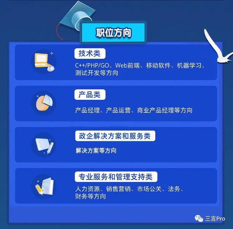 而今年百度发布的校招信息中,没有用户体验类,而是新增了政企解决方案和服务类方向。
