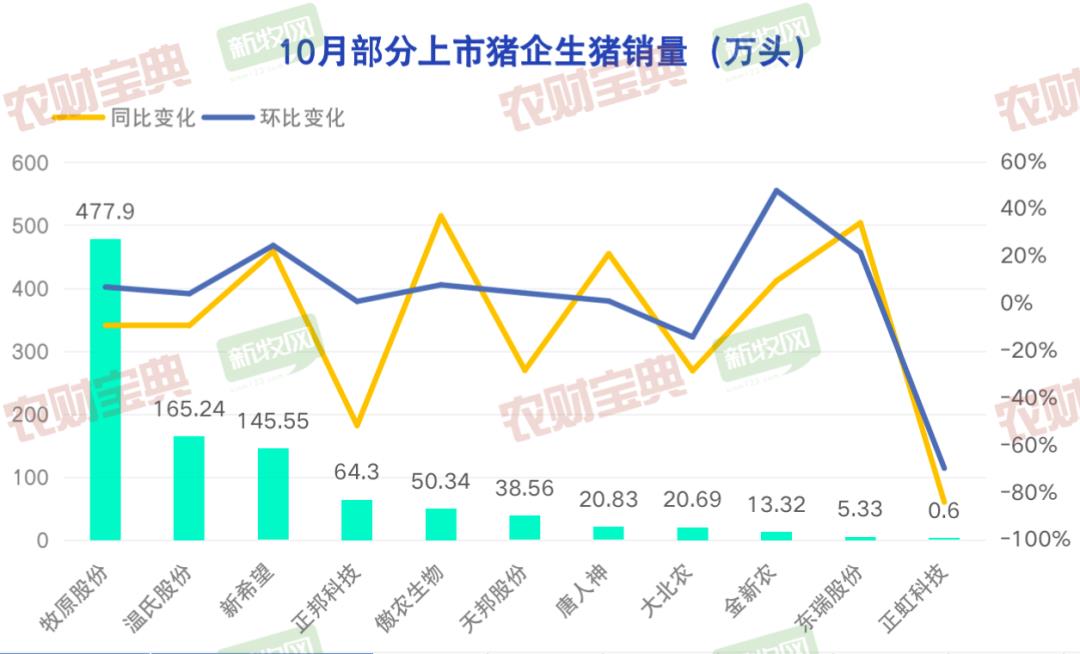11月6日晚间,牧原股份披露了10月份销售数据,当月,公司销售生猪477.9万头,销售收入149.37亿元,创下近一年新高。其中,向全资子公司牧原肉食品有限公司及其子公司合计销售生猪61.2万头。