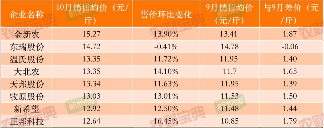 值得注意的是,10月以来,牧原股份的商品猪价格呈现上升趋势,销售均价26.05元/公斤,环比上涨13.01%。