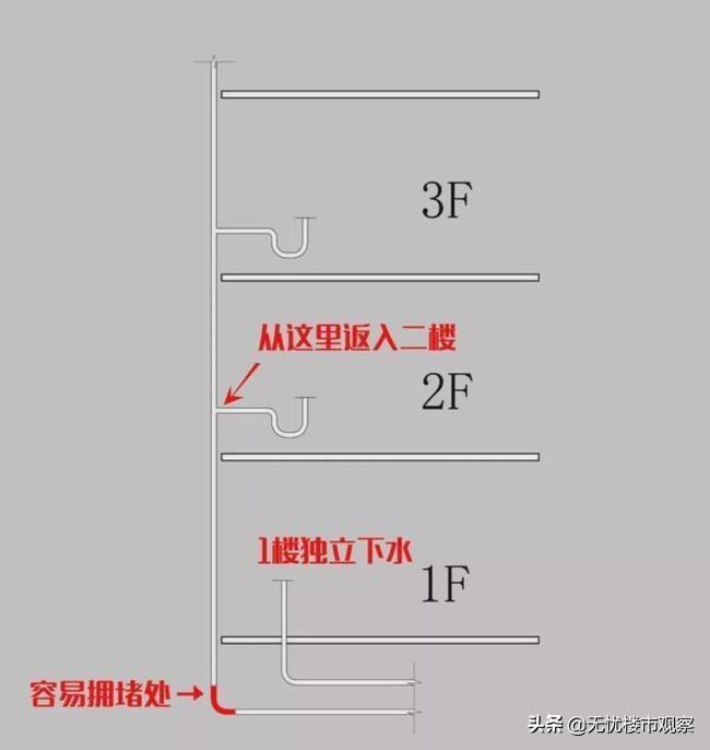 3楼一般不用担心,除非2楼也做了独立管道来排水。还有些特殊的情况,比如一层二层做成了架空层,那么3楼就是最底层,也就是反水层了。