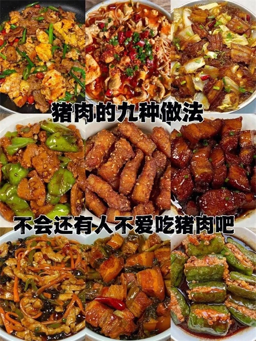 日常生活中我们离不开猪肉,首先因为猪肉营养价值很高,其次猪肉可以做很多很多美食,今天来分享猪肉的九种做法: