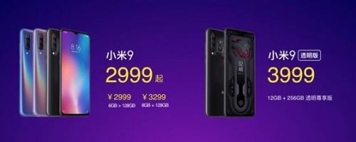 小米9 6+128GB版2999元,8+128GB版3299元。小米9透明尊享版,12GB+256GB至尊配置3999元。