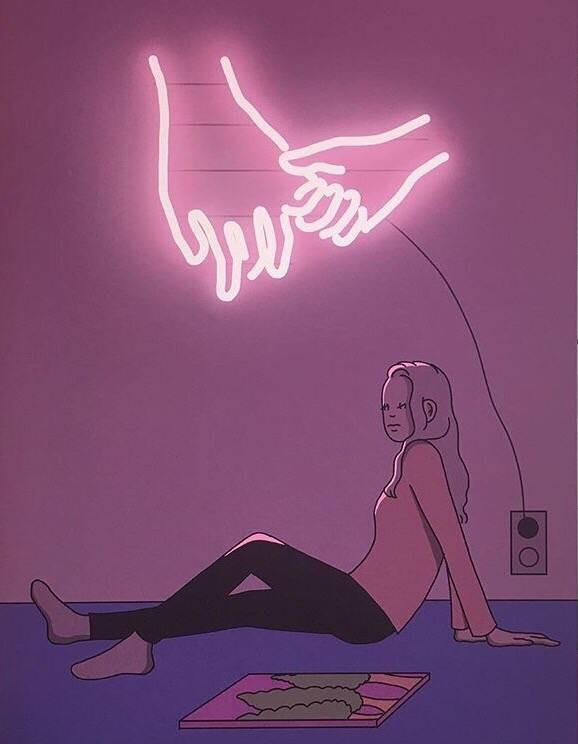 韩国插画师推特@shinmorae,ins@shinmorae_的作品展示平淡生活中的趣味。1988年5月出生,她在极具创意的“霓虹灯”系列中通过霓虹灯照映在人物、物体上的色彩、光线对比表达出寂寞与孤独感。为时尚服装品牌ADER制作的插图非常的酷,颜色也很炫,非常有个人特色~