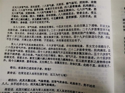 男子八岁换牙,十六岁有排精现象,二十四岁长智齿,三十二岁身体筋骨达到最壮盛,四十岁肾气开始衰少……