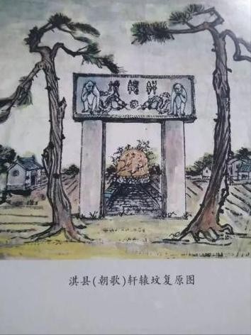 赵沟村老人回忆:轩辕坟/是两个石柱嵌一石匾构成/石匾横额上镌有轩辕坟三个字/横额两端各雕有一小猴/两石柱埋入土中很深/墓门东北部有一片约800余米长的土丘/为轩辕墓