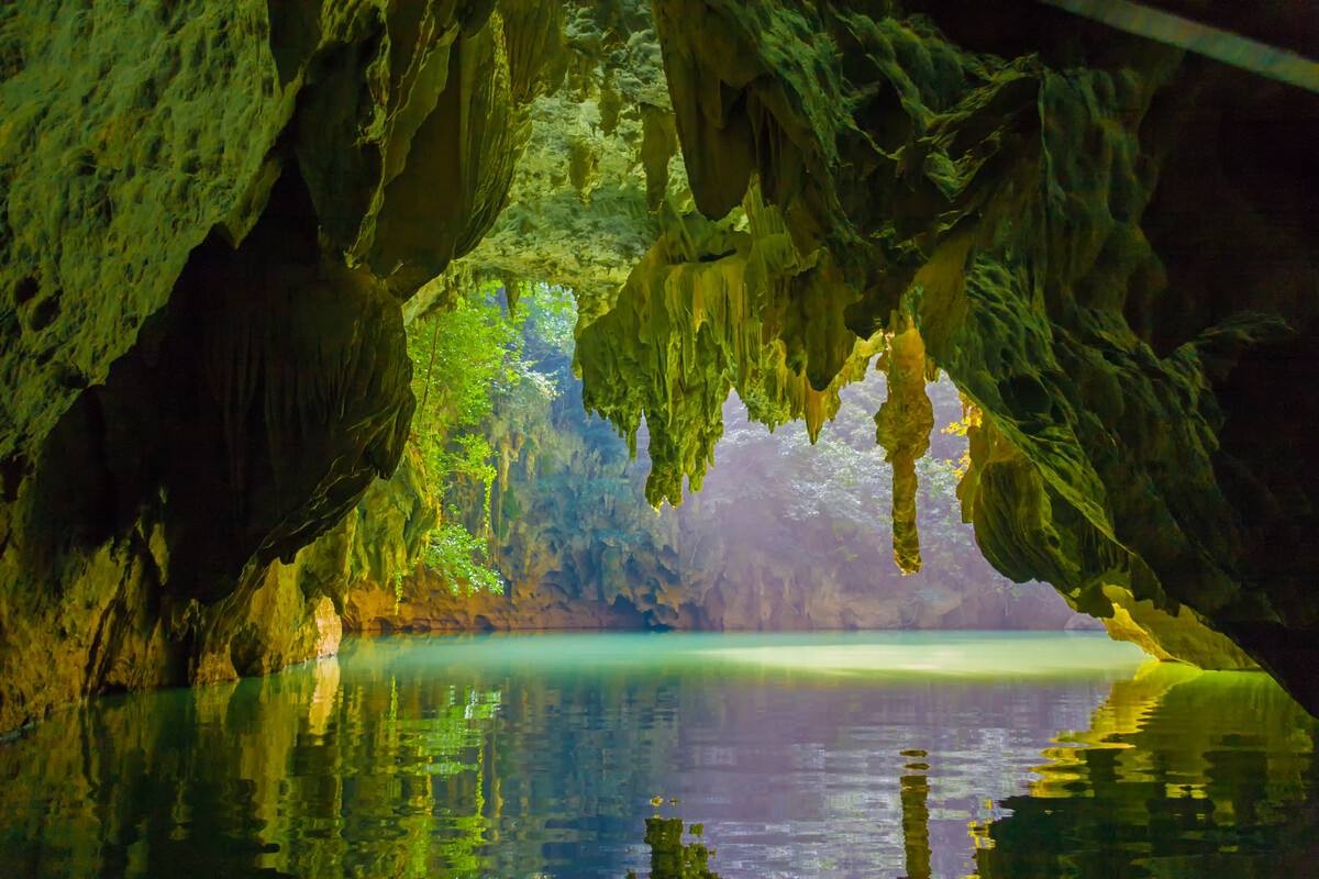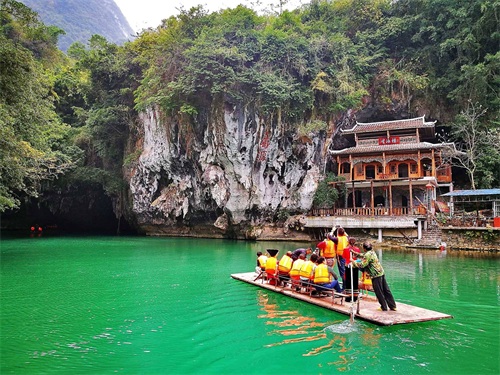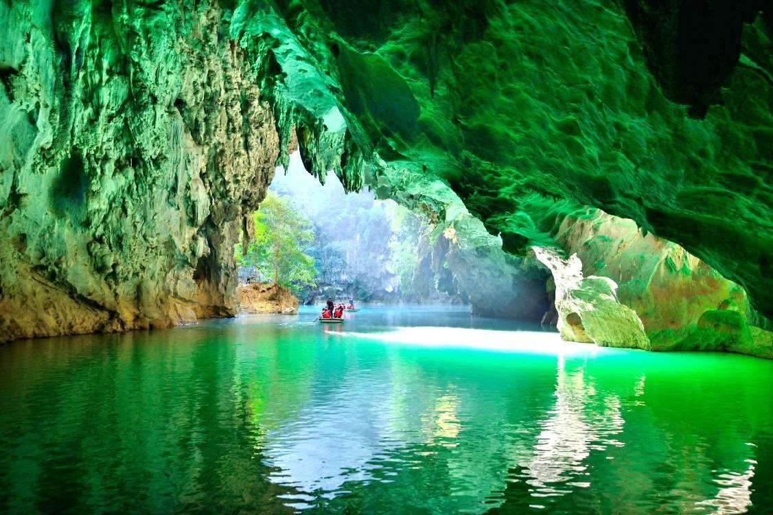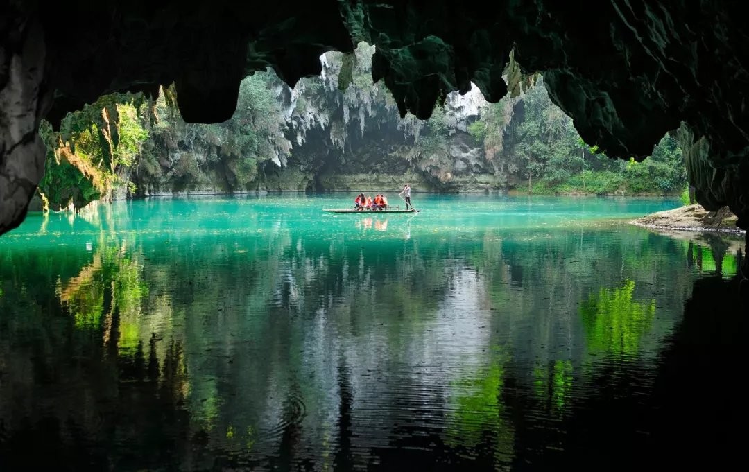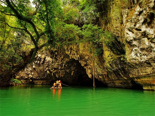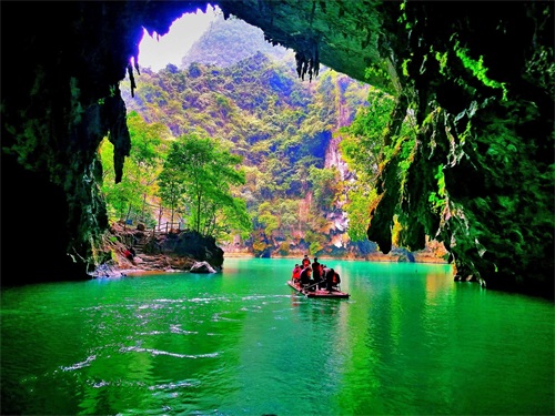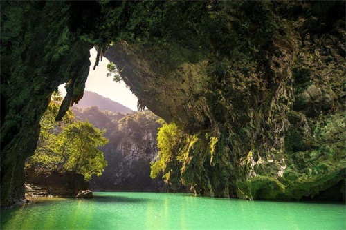 坐船穿梭在岩洞中,碧波、岩洞、古树...,让人不禁感叹自然造化的神奇,忍不住去探索。