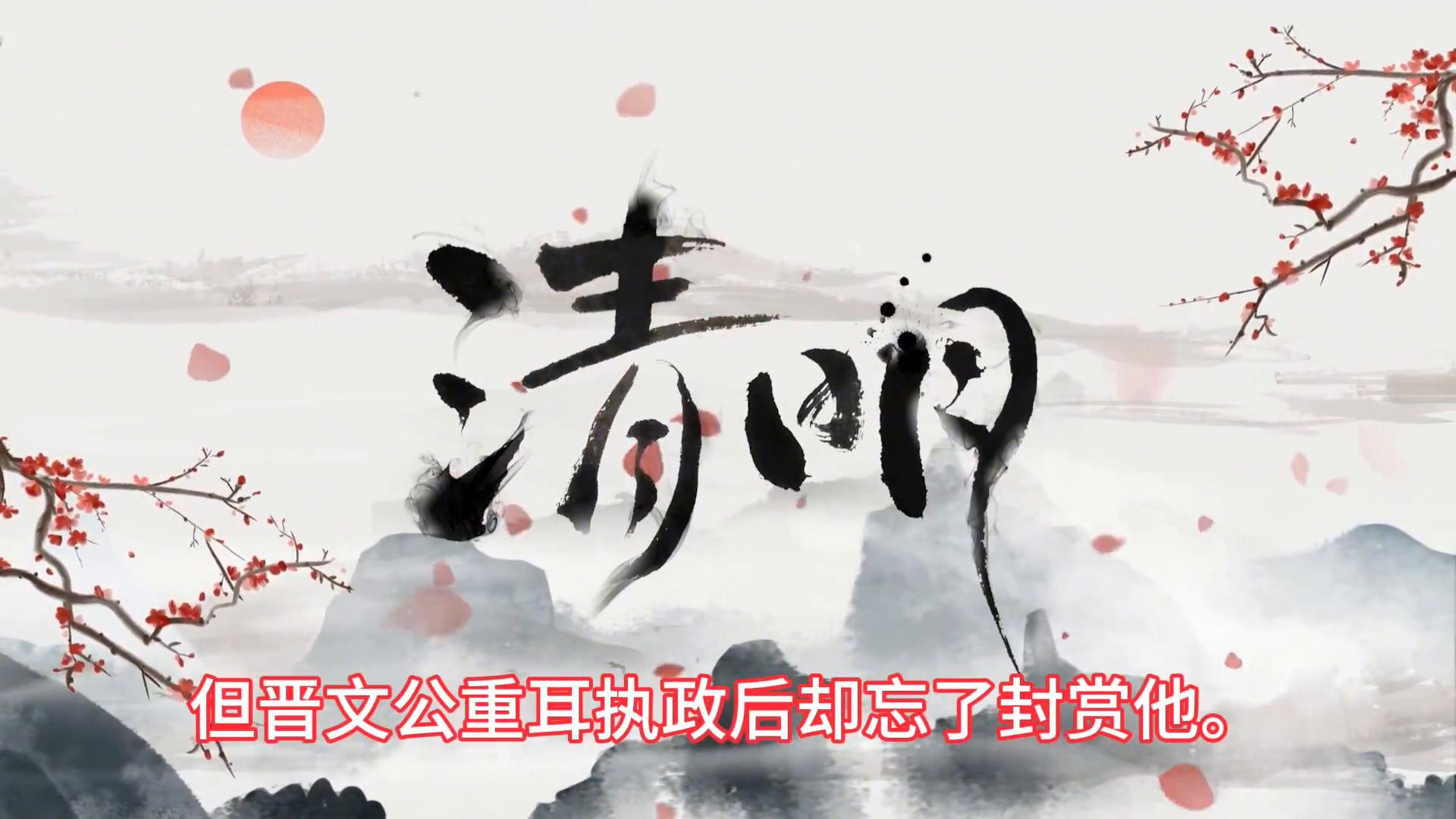 相传春秋时期介子推曾割股奉君,但晋文公重耳执政后却忘了封赏他。介子推不愿受赏,背着老母躲进绵山。晋文公下令放火烧山,想逼他出来,不料介子推母子抱树而死。晋文公为纪念介子推,将放火烧山的这一天定为寒食节,把寒食节的后一天定为清明节。
