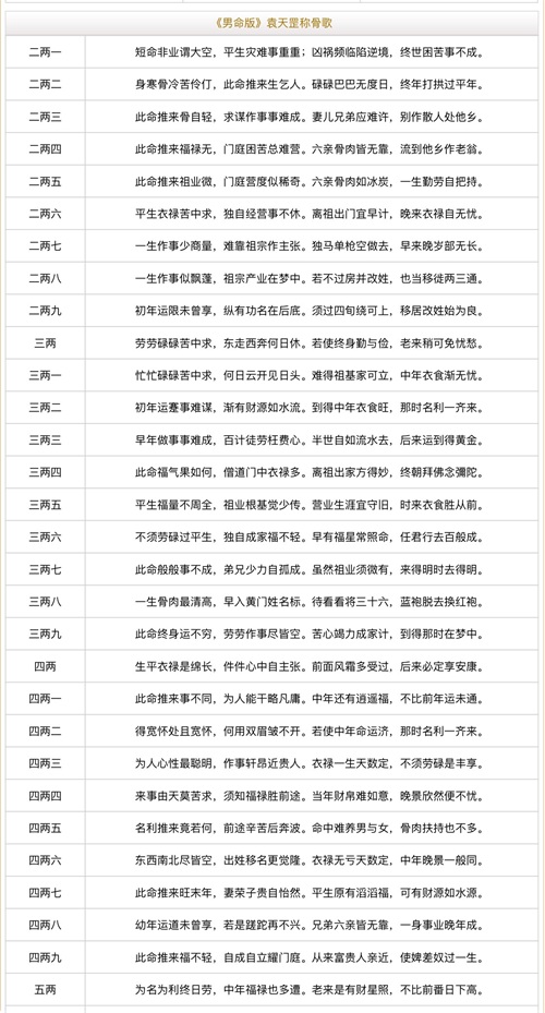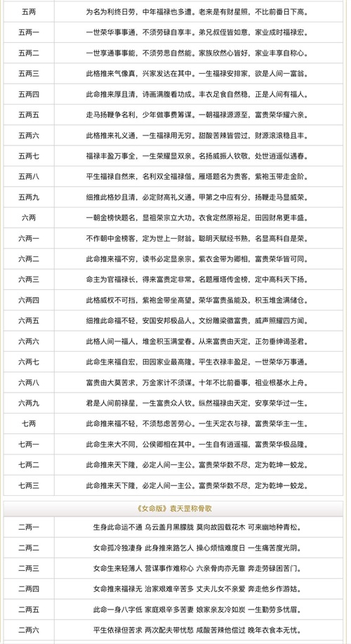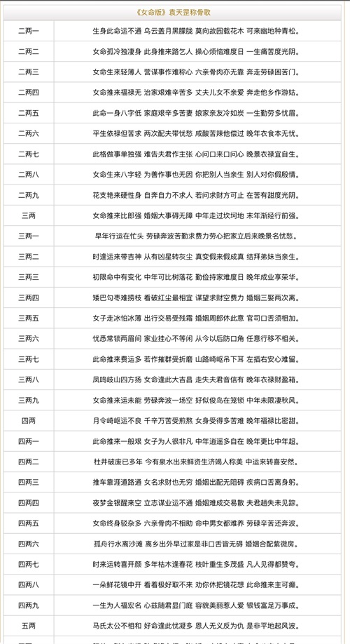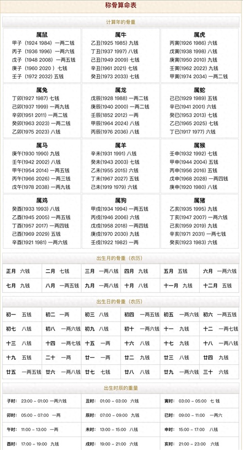 称骨算命法,是唐朝预测大师袁天罡所创,将人的生辰八字,即出生年月日时折算相应的“骨重”,然后根据“称骨”的总值来进行算命,是比较流行的术数方法之一。