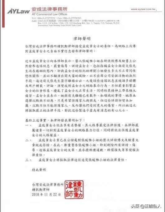 孟庭苇工作室发出声明,否认出轨等负面消息,并依法追究责任