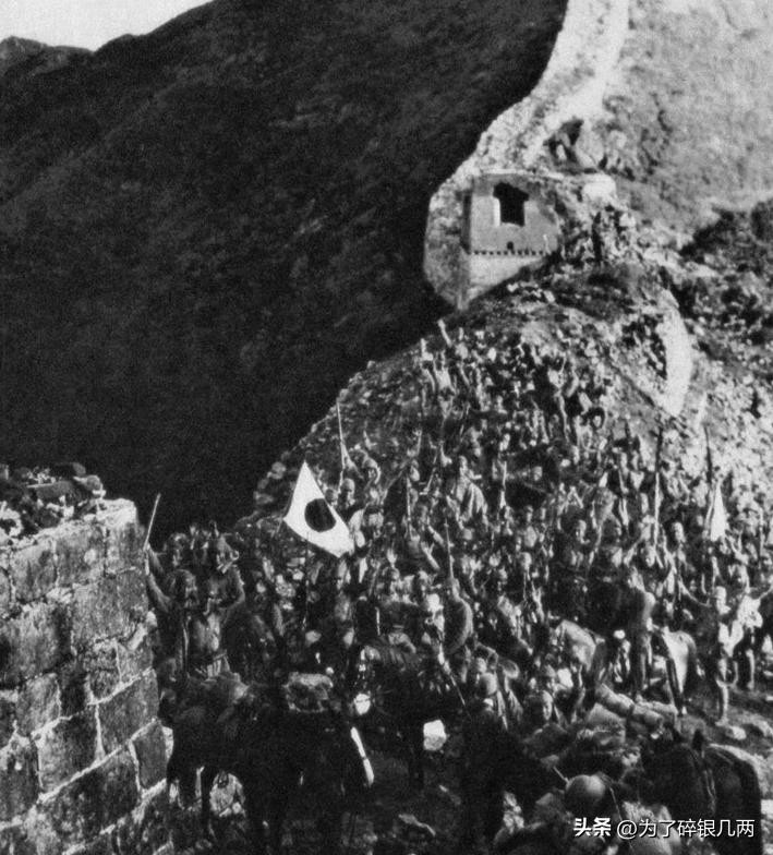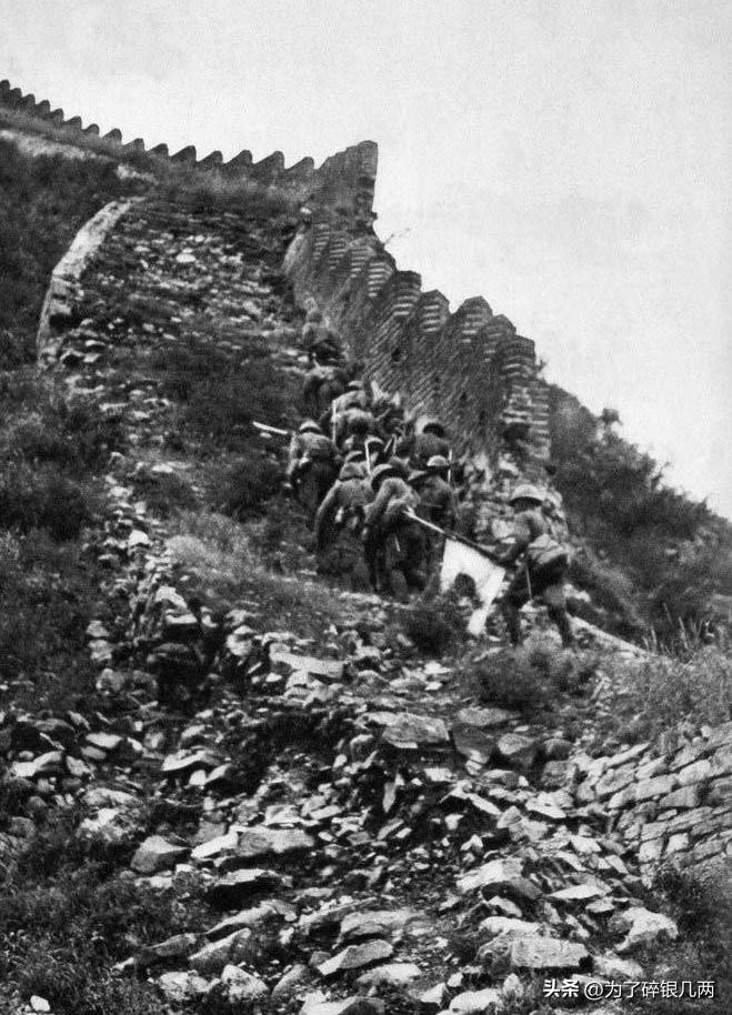 正在长城上面行军的日军,长城抵挡了上千年敌人,如今被日军攻占。