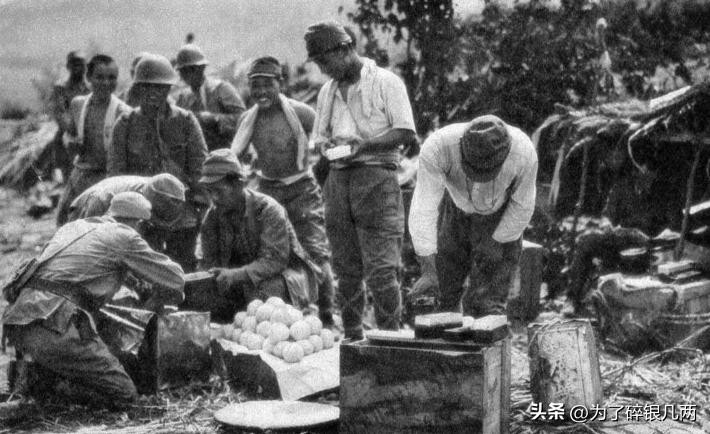 正准备吃饭的日军,吃着从中国抢夺来的粮食,然后屠杀中国平民。