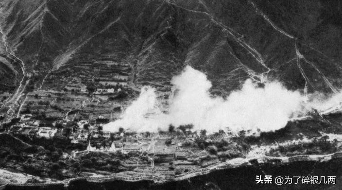 日军正在轰炸居庸关,航空兵拍摄下来的照片。