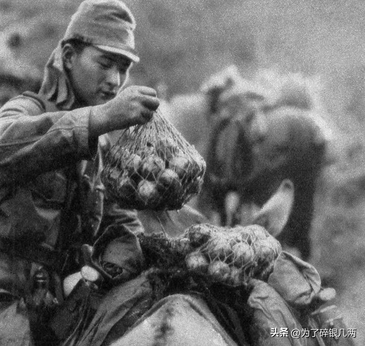 1937年8月16日,在北平战场,日军正在使用毛驴驮运物质,一个日军正在将抢来的粮食装在毛驴背上。