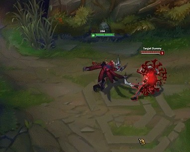 泰隆的武器没有做太多修饰,就只是一个小刀片,技能打在敌人身上触发被动效果像是毛笔画出来的符号一样。该出血效果是美服PBE,请自动替换脑补石油。
