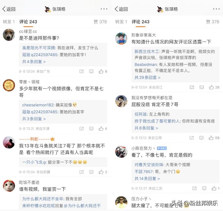 有看过相关视频的网友表示,声音一听就不是七哥(张琪格)本人,视频中的女子声音很尖锐,而张琪格声音挺浑厚的。