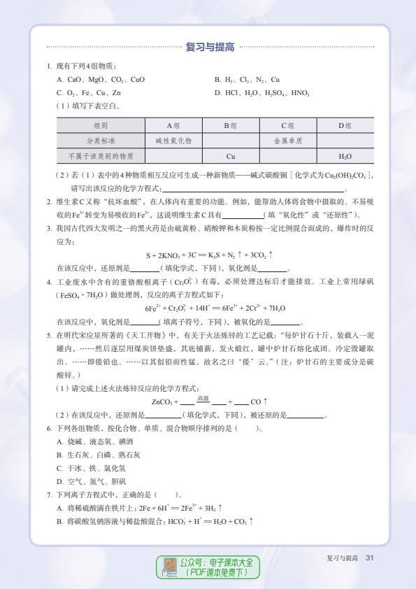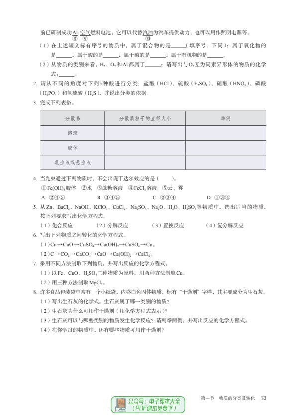 高一化学必修第一册电子课本PDF高清版2024暑假预习必备可下载