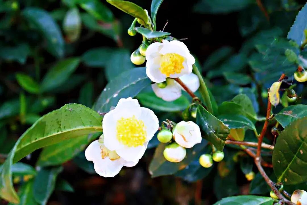茶树花既有茉莉花的芬芳,又有山茶花的风韵。茶树花虽非专门种植的观赏花卉,但绝对是茶园里的一道别致一格的风景。