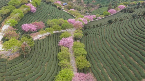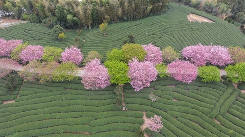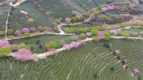 在十几年前,当地的几家茶场在开发茶园的时候,套种了一些樱花,用来改善茶园生态。这些樱花盛开的美景吸引了游客,后来政府又特意种植了大批的樱花,如今变成了全国规模最大的赏樱基地。