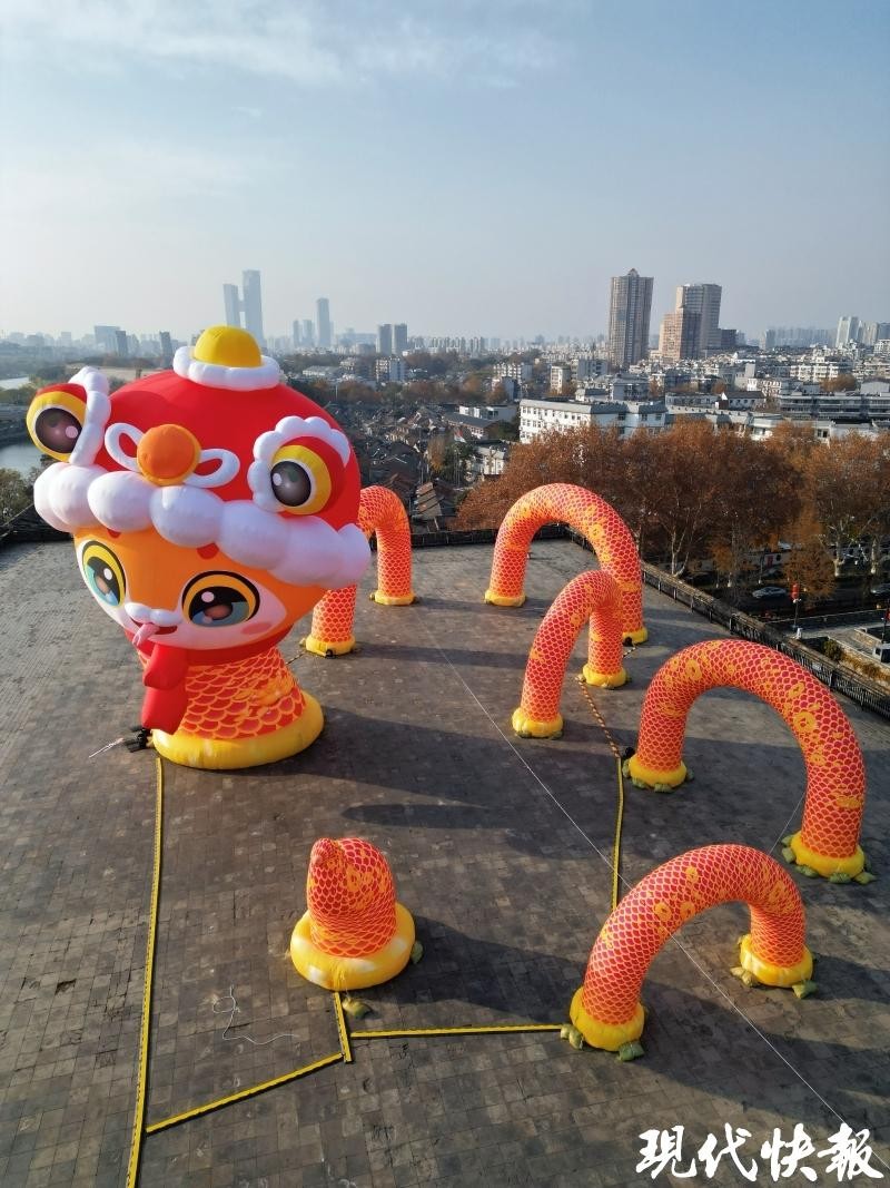 近日,不少市民发现,南京中华门附近城墙上出现了一个“蛇宝宝”。它正对大报恩寺,和河西地标建筑同框。