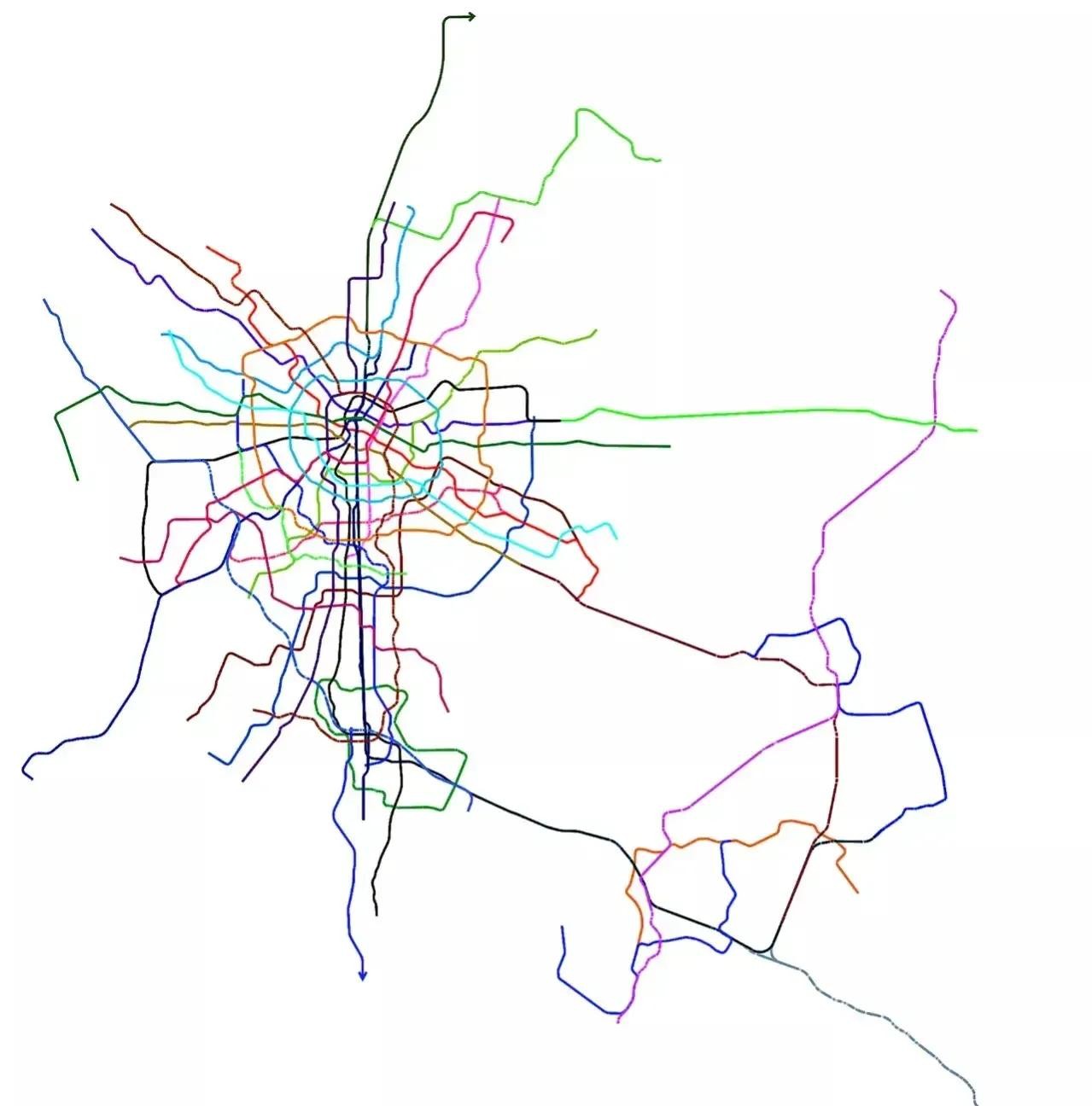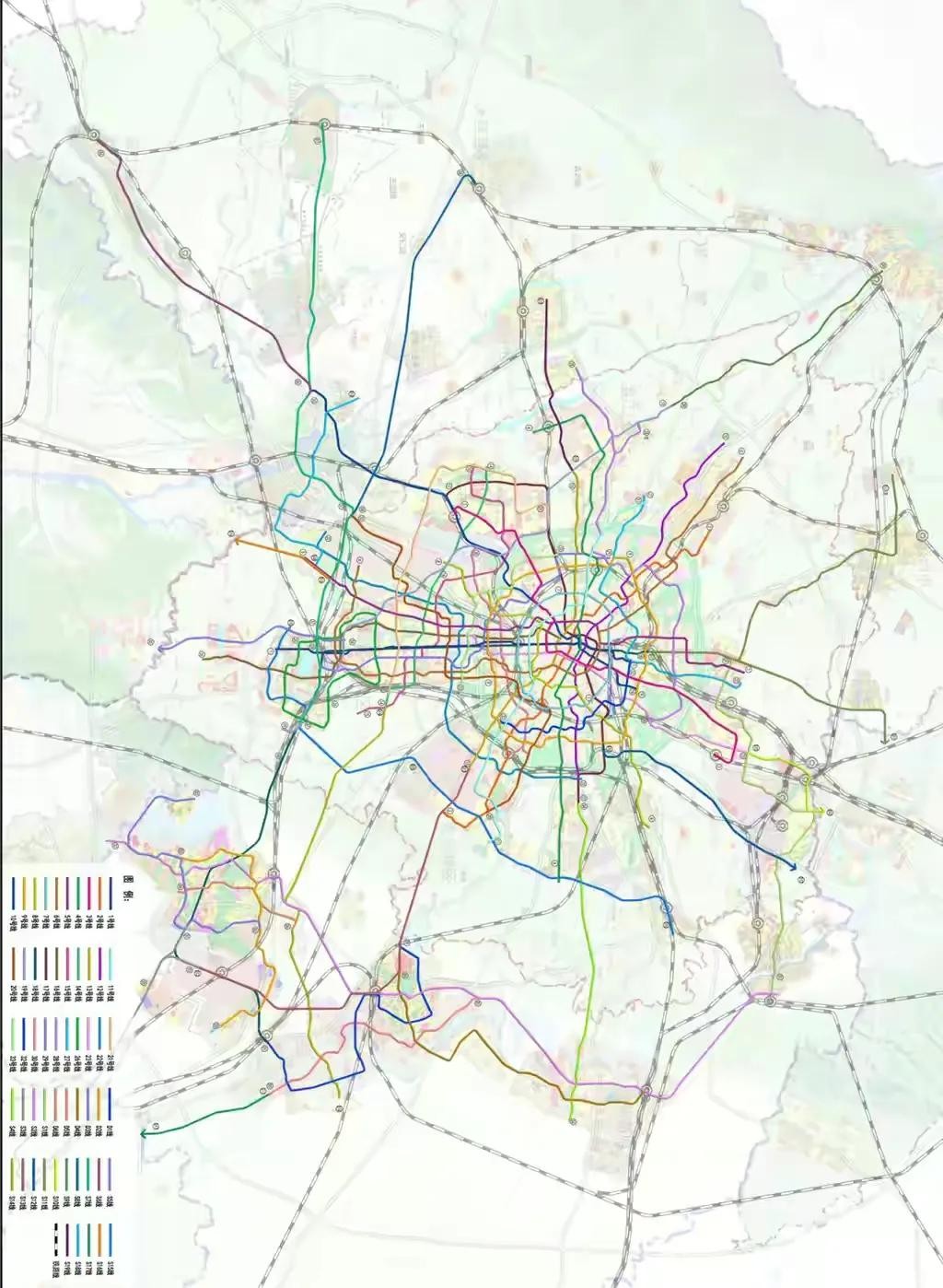 最新版本成都城市轨道交通线网规划,由55条减至36条